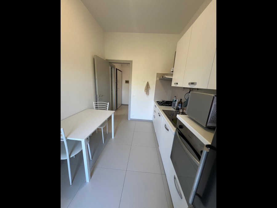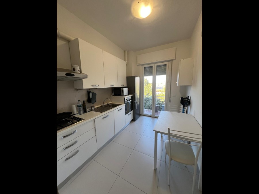 La cucina semi abitabile è ben arredata e completa di elettrodomestici oltre a balcone di servizio.