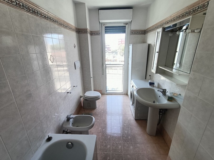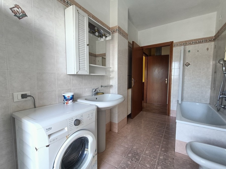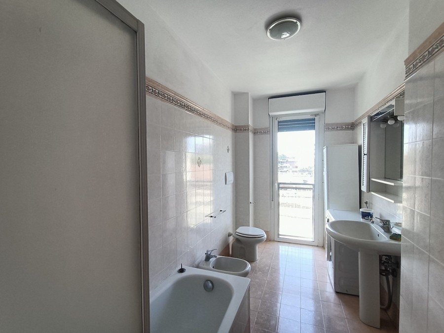 Tramite un bel disimpegno, con spazio utile per un armadio a muro o ripostiglio, si raggiunge la grande camera matrimoniale di circa 18 mq e l’ampio bagno finestrato e con vasca.