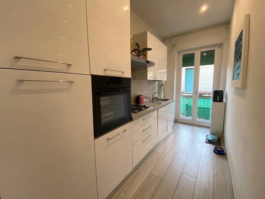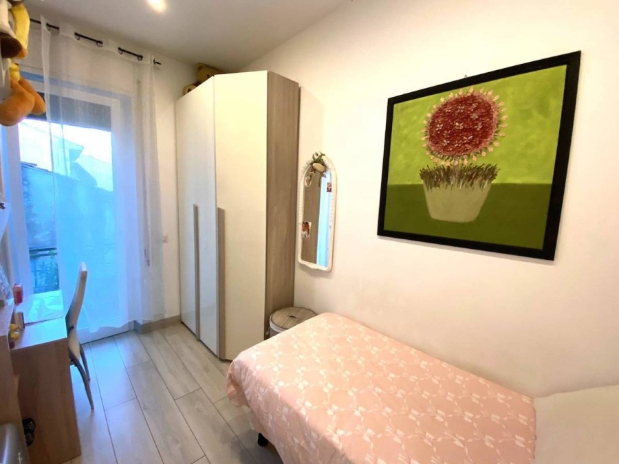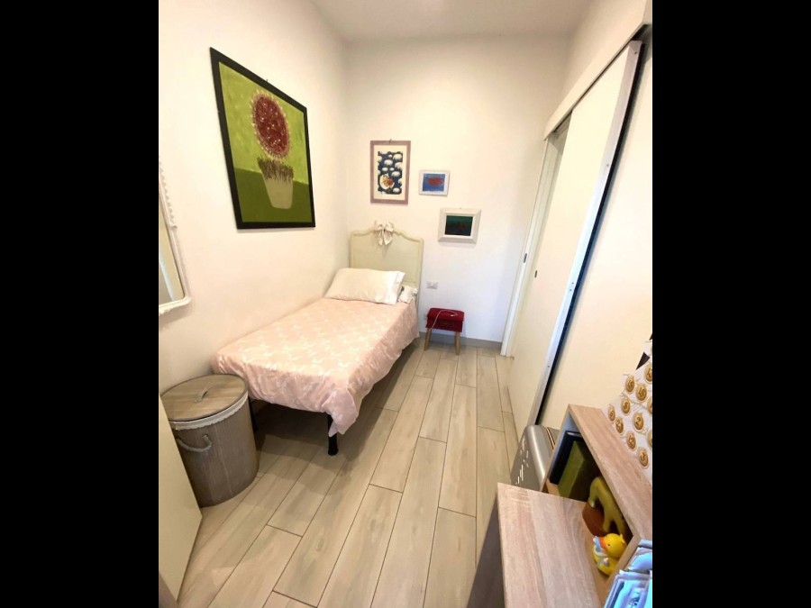 L'immobile, moderno e luminoso è composto da: soggiorno con balcone, cucinotto con balcone, disimpegno, camera, stanza armadi (uso cameretta), bagno finestrato con doccia e ripostiglio.