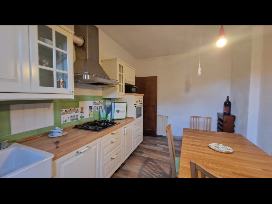 L'immobile, in buone condizioni di manutenzione, si compone al piano terra da un ingresso direttamente in soggiorno con camino, da una cucina abitabile, da un bagno e da un'altra stanza utilizzabile come studio o camerina.